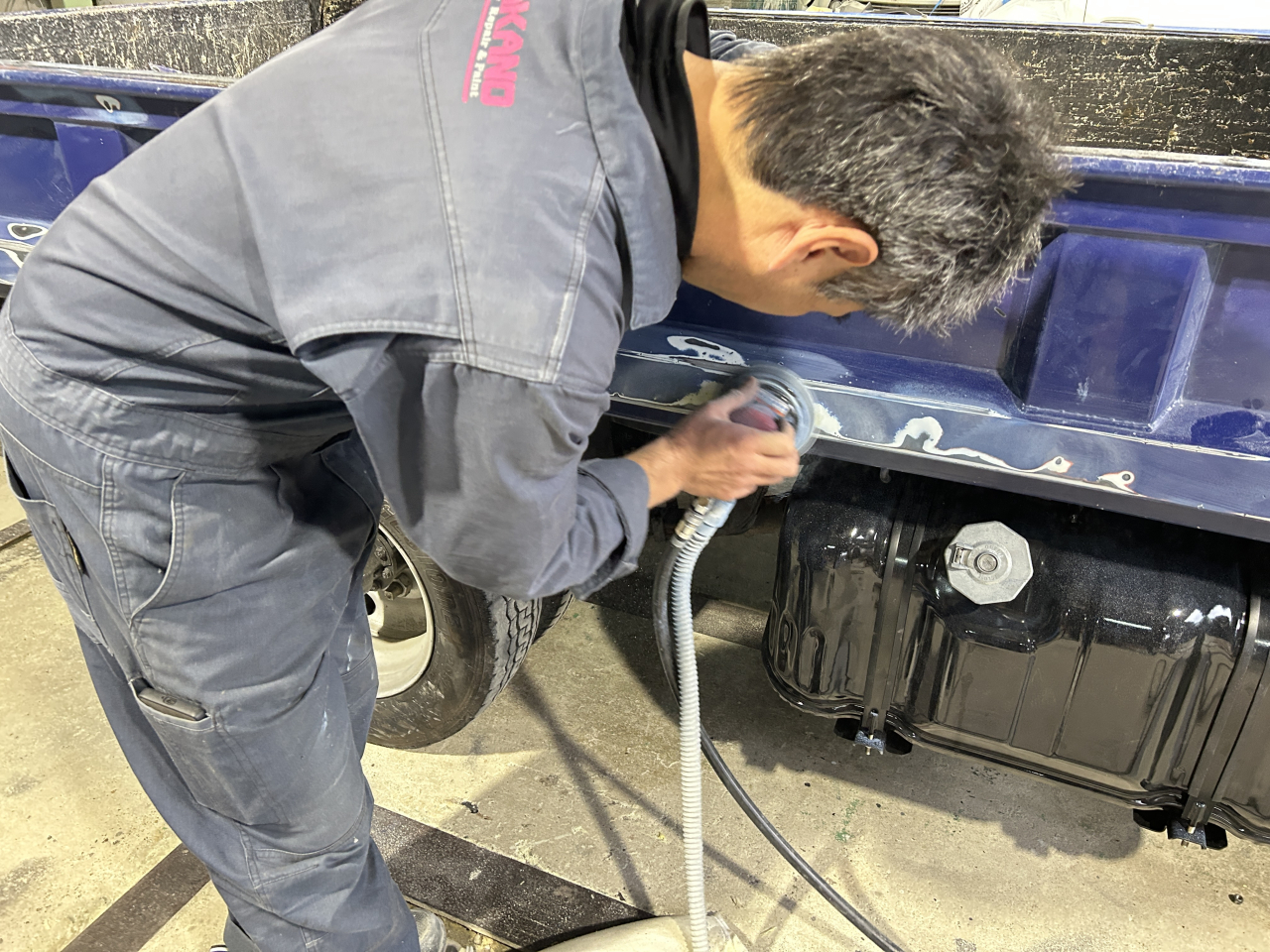 「擦ってしまった…」そんな時もご安心ください。自社工場の専門スタッフ(職人)が、56年の技術で元通りに修復します。 小さなキズも放置するとサビの原因になります。大きな損傷・事故修理まで、まずは無料のお見積りからご相談ください。